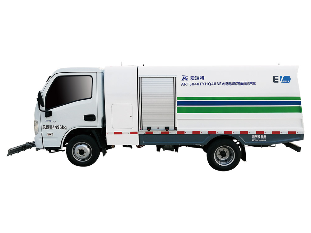 ART5040TYHQ48BEV Pure electric road maintenance vehicle is mainly used for washing and maintenance of motorway, non motorway, sidewalk, back street lane, municipal garden, property community and other roads. The front high-pressure flushing and multi angle flushing device is used to clean the dirt and urban psoriasis on the road surface, road teeth and traffic sign line. It is also suitable for garden medication, rear washing cart, washing site and high-pressure water gun. It can wash the road sections where the maintenance vehicles are inconvenient to stop.