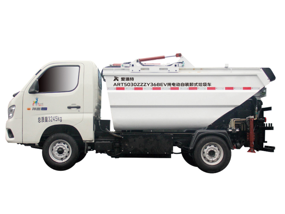 ART5030ZZZY36BEV純電動自裝卸式垃圾車主要用于物業小區、鄉鎮、商業區、旅游景區、學校等場所桶裝垃圾的分類收集運輸,箱體密封性好,純電動作業,使用成本低,零排放。