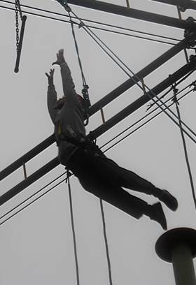 訓練現(xiàn)場群情激躍,隊員們踴躍參與。訓練有五個體驗項目組成,以增強對自己對團隊信任和合理利用資源為目的的穿電網(wǎng),幫助克服心理障礙、提升自我潛能的空中單杠,鍛煉毅力的攀巖以及培養(yǎng)和改善溝通技巧、運用多種方式溝通解決問題的氣球辯論。在項目完成后,隊員們在培訓師的引導(dǎo)下進行了分享,暢談親身體驗和感悟,發(fā)現(xiàn)問題、分析原因,將活動意義延伸,引向深入。